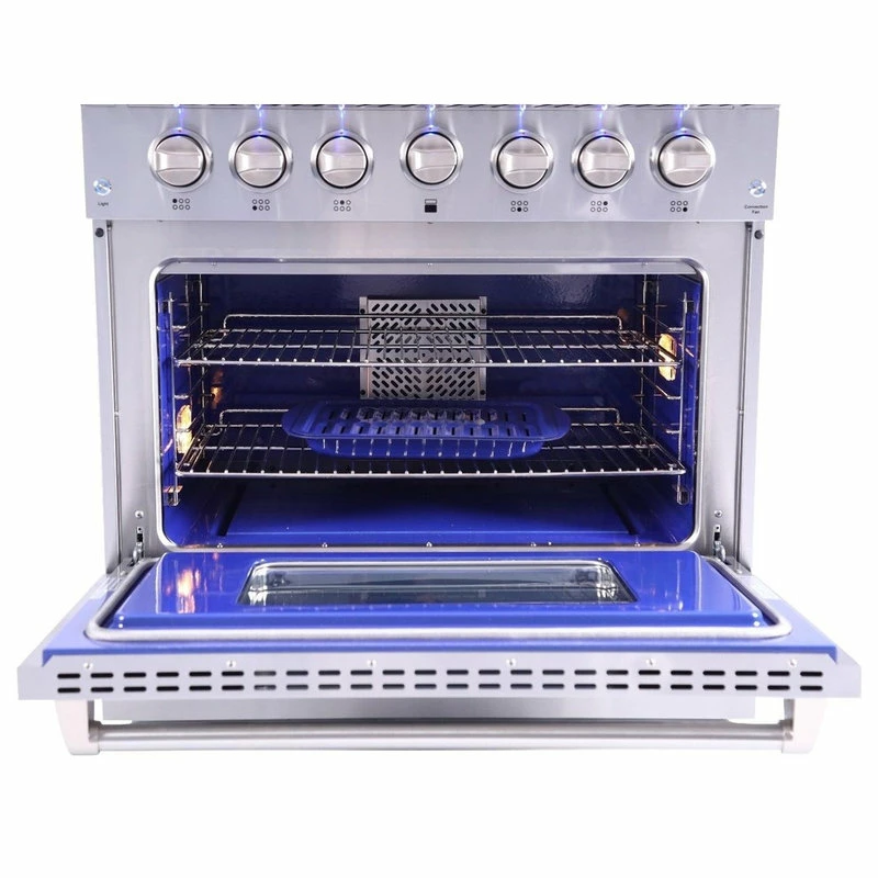 Each quality duel fuel range is equipped with halogen lights for improved visibility through a double paned glass oven window, in addition to chrome plated oven racks for easy cleaning and a modern sheen. Plus, theyβre fixed with fully adjustable heavy-duty legs to help your stove stand tall and sturdy, at any desired height.