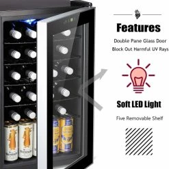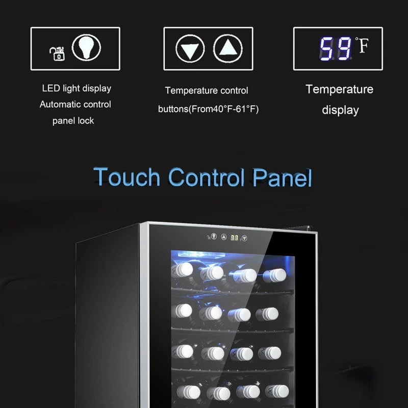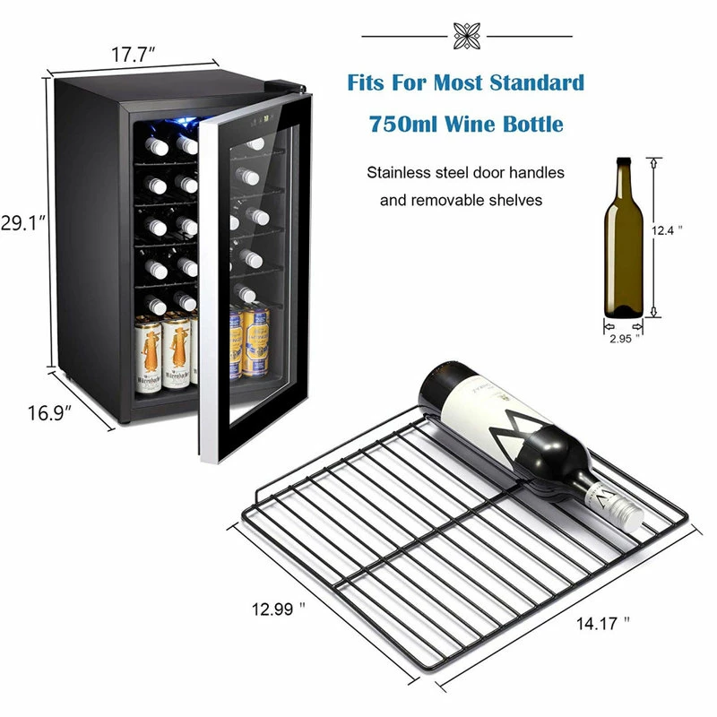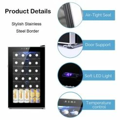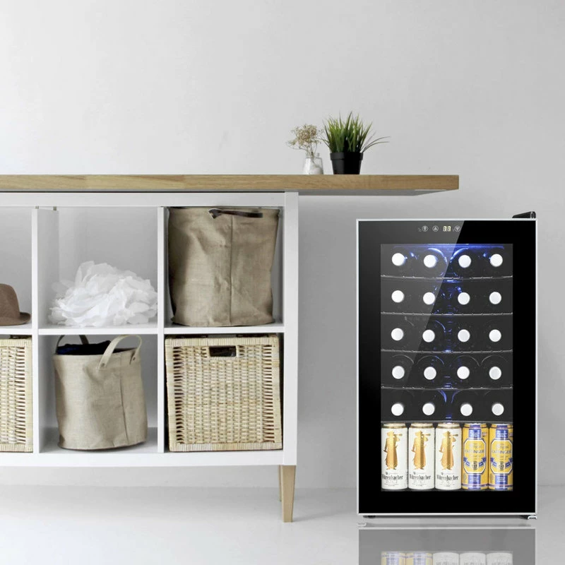 With its reinforced glass door with air tight seal and help to maintain an ideal humidity level, this beverage refrigerator gives you a compact and modern design perfect for your living room . Blue soft LED interior lighting not only beautifully showcases the wine but wonโt damage the wine.