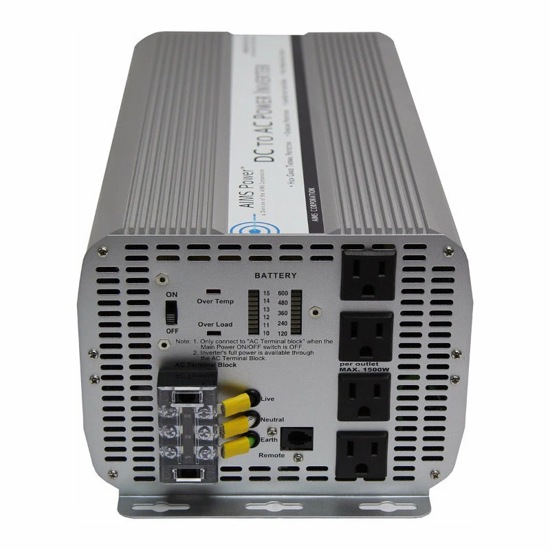 This 5000 watt 12 volt power inverter by AIMS Power converts DC (direct current) power stored by batteries into AC (alternating current) electricity that can be used to run practically any household appliances or tools.