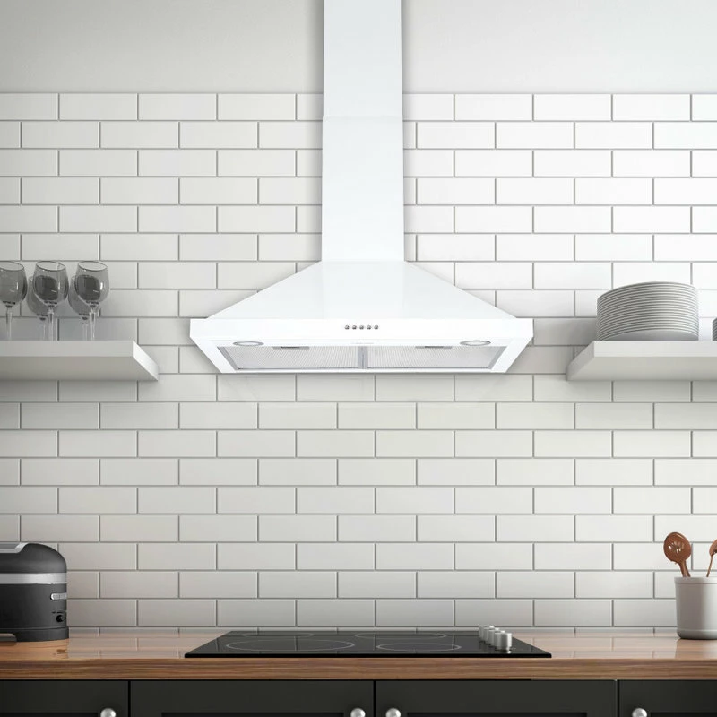 This expertly designed wall-mount pyramid style range hood features Pure Lights ™, Ancona’s long-lasting eco-friendly LED lights to illuminate your cooking surface at a fraction of the cost of conventional lights. The easy-to-use 3-speed push button controls combined with our powerful independently tested motor will effectively eliminate smoke, moisture, and cooking aromas leaving the air in your kitchen pure and fresh, and the discreet logo means that it will beautifully match any of your existing appliances. This Ancona range hood combines exceptional performance with easy-to-use features and a design that will beautifully complement any kitchen!
