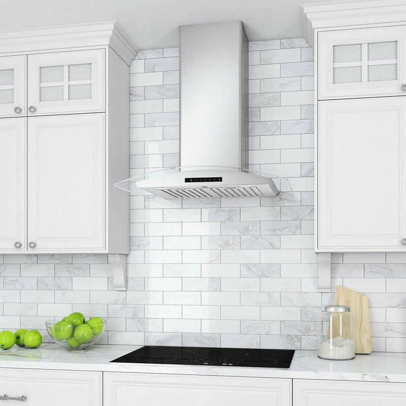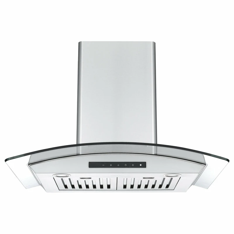 - Wall Mount Glass Canopy Range Hood. High grade 430 stainless steel.