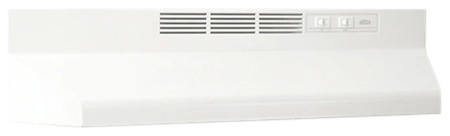 The 41000 series of non-ducted under cabinet hoods are made to exacting Broan standards, providing effective filtration, high quality and value. The range hood comes in a variety of appliance matching colors and widths, and includes a removable combination grease-charcoal filter for cleaner indoor exhaust recirculation, a fan designed for years of trouble free service, a protective lamp lens that distributes light evenly over the cook-top and control switches for fan speed and light activation.