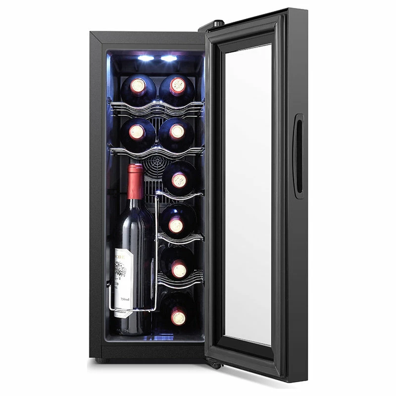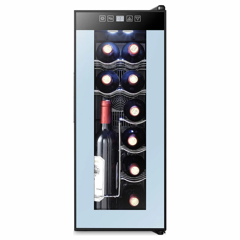 Keep your favorite red or white wines cold with this premium wine cool refrigerator from High Life. If you’re looking for a smart way to Keep your wine an ideal temperature, but you don’t have room in your fridge or don’t want to build an entire wine cellar, nothing beats the High Life Thermoelectric Wine Cooler. Designed to hold 12 bottles of red or white wine,and other favorites this is the ultimate choice for Keeping your beverages fresh and delicious for parties, holiday meals, or just long work weeks. Great for parties. Optimized Thermoelectric Cooling – This wine refrigerator features an LED display to let you monitor internal temperatures and customize it between 50 deg f and 64 deg f to better suit your type of wine or beverage.