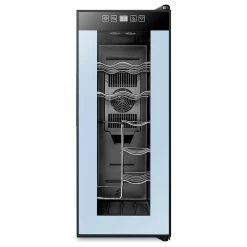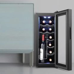 - Compact, Space – Saving Design – Easier to store in a kitchen, indoor bar, or other personal storage space this wine cooler holds up to 12 bottles without taking up much room in your home. It also makes a fun gift for wine lovers