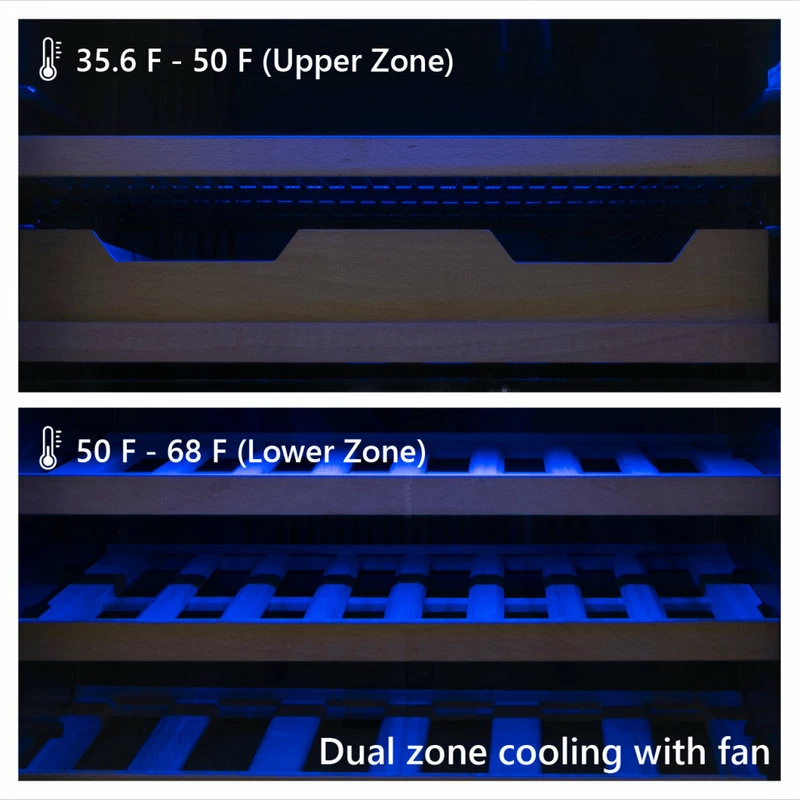 DUAL ZONE COOLING WITH FAN – Dual temperature controls for upper and lower compartments, allows you to customize the temperature for your different food and beverage needs.
