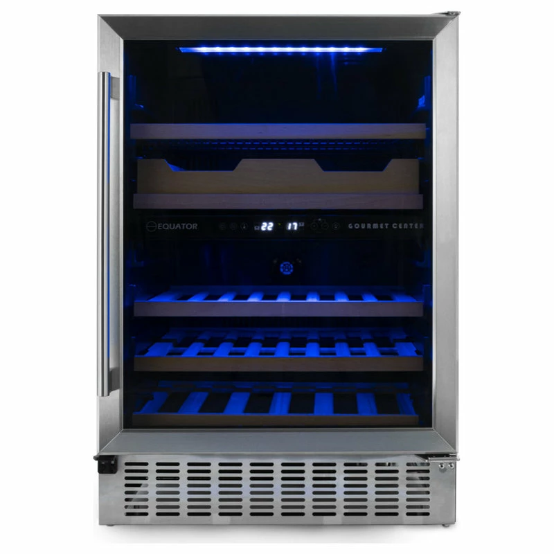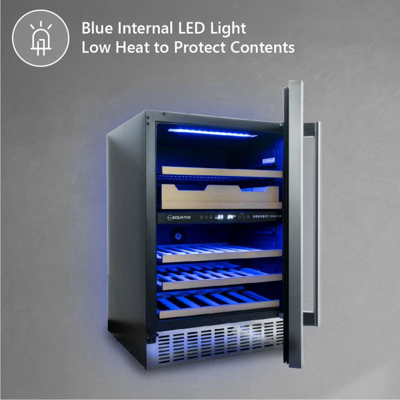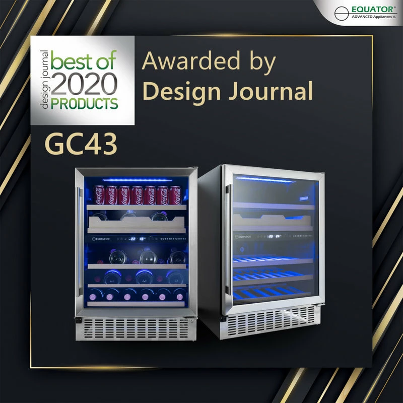 GC 43 is the ultimate convenience appliance for connoisseurs of fine beverages and specialty foods. This chic, Luxury Gourmet Center boasts a 43-bottle capacity and lets you store a mix of canned beverages, wine bottles, gourmet foods, and/or fine cigars – all in one convenient space, making it ideal for enjoying the quality of life in one unit. The compact size of 34.6 x 23.4 x 22.9 inch (HxWxD) fits easily into small spaces and gives you the option of having it built-in or freestanding. Its sleek stainless steel exterior and internal blue LED lighting gives it a beautiful look. With dual temperature controls for upper and lower compartments, the compressor cooling system keeps your fine foods and drinks at their optimum temperatures.