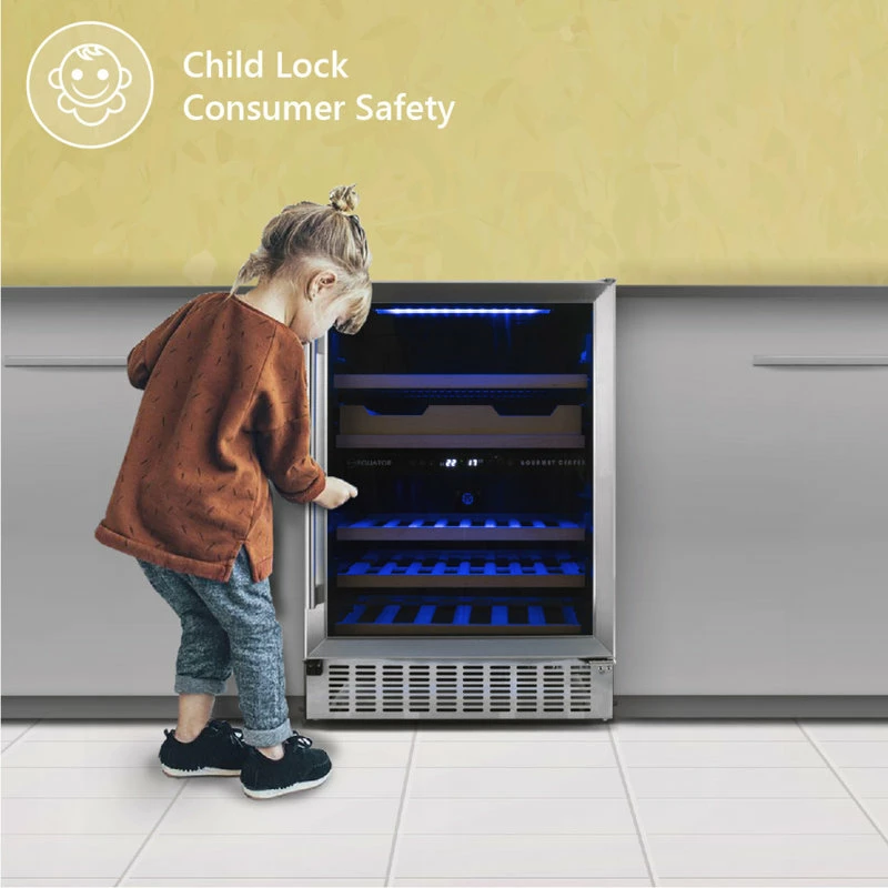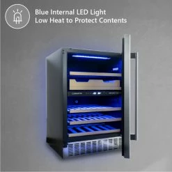 43 BOTTLES CAPACITY – This appliance has a compact size yet has a large capacity to let you store up to 43 bottles. The different shelves let you store a variety of bottles, cans, fine foods, and cigars.