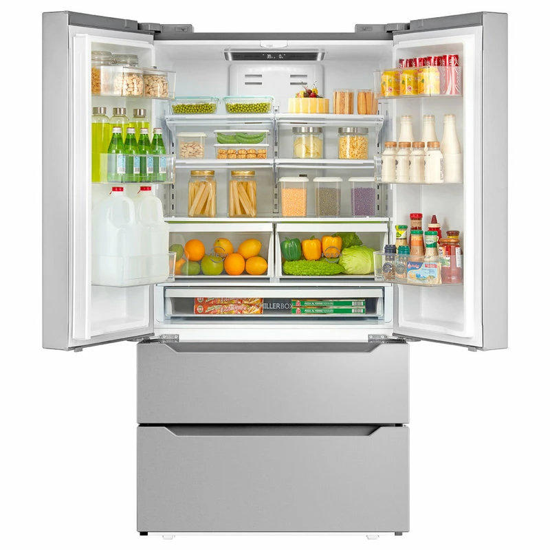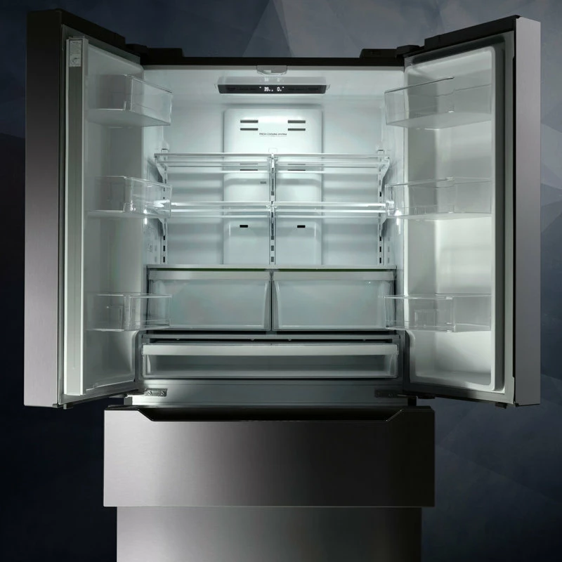 - French Door Refrigerator made of high-quality Fingerprint Resistant Stainless Steel