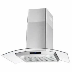 The combines curved glass and stainless steel perfect for any modern kitchen. The flowing designs of Cosmo wall mount range hood come with an efficient 380 CFM centrifugal motor that traps smoke and fumes from lingering in your home. This range hoods include arc flow permanent filters that are the only filters that provide greater airflow and are also dishwasher safe for easy cleanup. Push-button controls manage this kitchen hood with multiple functions including 3 fan speed and LED lighting for added visibility.
