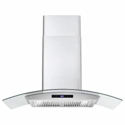 The combines curved glass and stainless steel perfect for any modern kitchen. The flowing designs of Cosmo wall mount range hood come with an efficient 380 CFM centrifugal motor that traps smoke and fumes from lingering in your home. This range hoods include arc flow permanent filters that are the only filters that provide greater airflow and are also dishwasher safe for easy cleanup. Push-button controls manage this kitchen hood with multiple functions including 3 fan speed and LED lighting for added visibility.