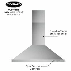 Remodel your entire kitchen with Cosmo’s 63175-DL modern canopy ductless wall mount range hood. Experience premium brushed stainless steel built to withstand high heat, grease, oil, and steam. Our carbon filter kit is included for ductless and recirculating installation. Thick stainless is used all around to fight against accidental bumps and dents. Our wall mount range hood includes a chimney set that is seamless on all three sides for cleaner lines. Cook without unwanted odors and harmful air pollutants from disturbing your home. Contemporary styling is used for modern kitchen decors and an upscale luxury feel. Trust Cosmo for your next kitchen appliance.