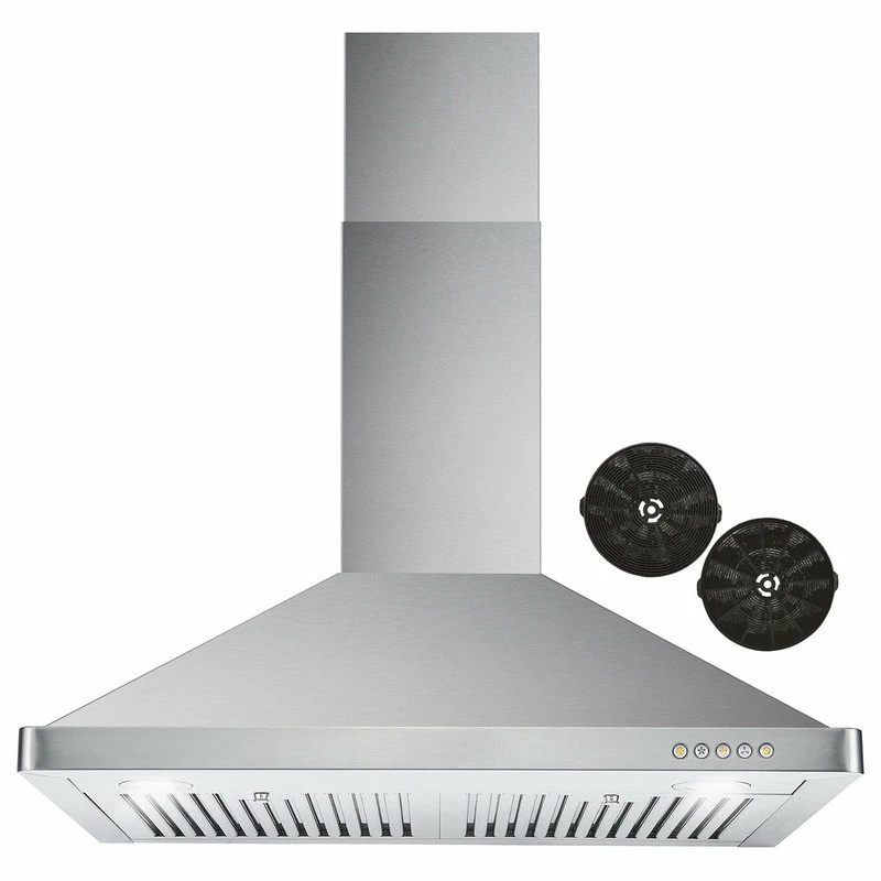 Ductless range hood designed for wall mounting features ultra-quiet design to effectively remove smells and odors when cooking, carbon filter kit is included for ductless and recirculating installation