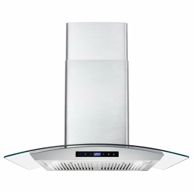 Cosmo’s COS-668WRCS75 combines curved glass and stainless steel perfect for any modern kitchen. The flowing designs of our 30″ wall mount kitchen hood come with a 380 CFM centrifugal motor that traps smoke and fumes from lingering in your home. Cosmo Range Hoods include ARC FLOW Permanent Filters that are the only filters needed to provide greater airflow and are dishwasher safe for easy clean-up. Featuring a High-tech LCD touch control panel to manage multiple functions, including 3 fan speeds and LED lighting for added visibility.