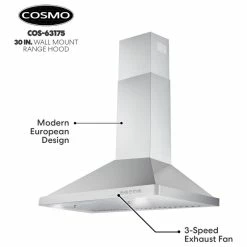 Remodel your entire kitchen with Cosmo’s COS-63175 modern canopy wall mount range hood. Experience premium brushed stainless steel built to withstand high heat, grease, oil and steam. Thick stainless steel is used all around to fight against accidental bumps and dents. Our wall mount range hood includes a chimney set that’s seamless on all three sides for cleaner lines. Easy-to-use push button controls require no guesswork. Cook without unwanted odors and harmful air pollutants from disturbing your home. Contemporary styling is used for modern kitchen decors and an upscale luxury feel. Trust Cosmo for your next kitchen appliance.
