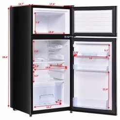 This 3.4 Cu. Ft. White Compact Refrigerator w/ Internal Freezer is ideal for smaller spaces like a dorm room, teen’s bedroom or office. This appliance also suit for hotels, offices, household etc. It is sized perfectly to keep drinks and small amounts of food cold and in a convenient location. With a double door design, the separate freezer compartment can be selected quickly for frozen treats or packages of meat.It makes the most out of the space it has with three small glass shelves, a fruit box and a egg rack for storage. There is also a special Can dispenser and door bins to hold drinks on the inside of the door. If you are looking for a fridge to keep your food, drinks, & frozen snacks organized and cold, then this is the fridge for you! Do not hesitate to buy one!
