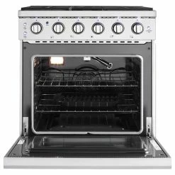 The commercial grade gas oven offers an extra-large 4.5-cubic foot cooking capacity, 2 removable oven racks and a tray, 6 adjustable rack positions to accommodate a various size of food items. Turn your oven to a Thanksgiving turkey roaster.