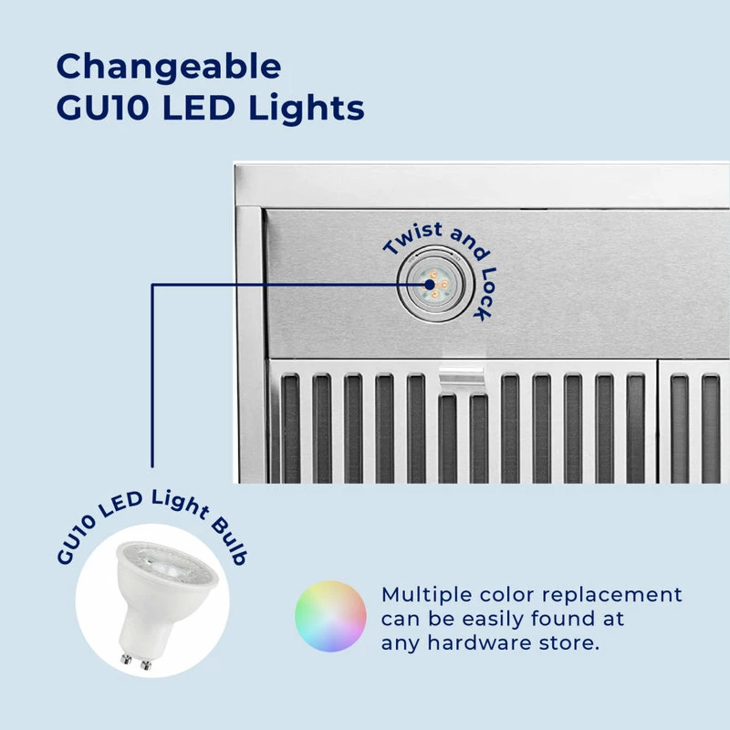 No more deciding between a clean kitchen and a delicious meal. You can cook your favorites as often as you’d like without having to deal with noxious odors, greasy particles, and stained cabinets. Easily control the suction power and noise levels with our unique six-way setting system. Our energy-saving LED lights provide the perfect amount of light and can be quickly replaced as needed.