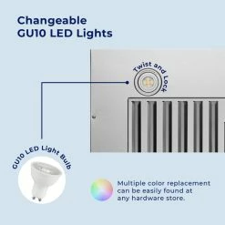 – Bright, energy-saving LED lights with GU10 base. No need to request new bulbs from the manufacturer if you want to coordinate the light color with your kitchen. You can find the GU10 base bulbs at any local hardware store.