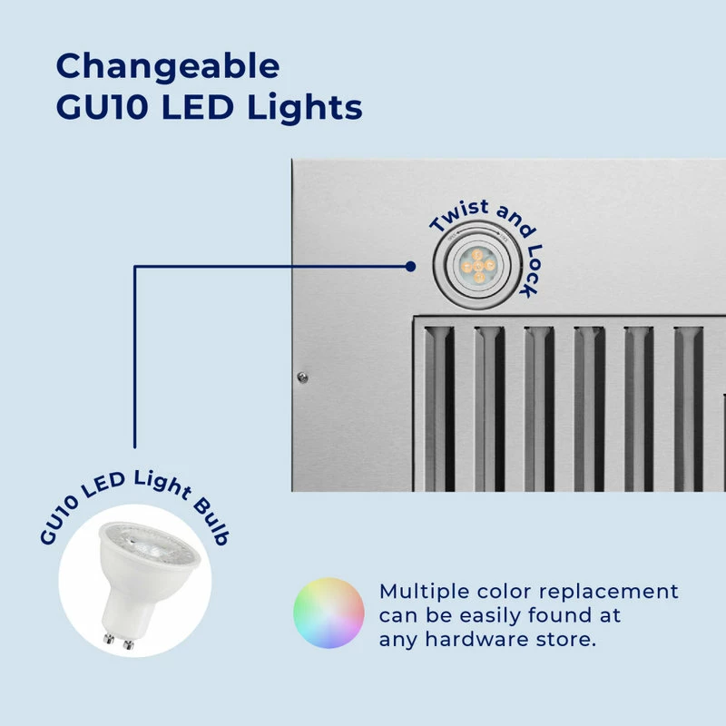 LED lights provide plenty of light to make prep and cooking a breeze. You can easily remove the baffle filters and run them in your next dishwasher cycle to clean. A quick wipe down of the stainless steel body will keep it looking new.