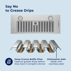 – Convert to ductless system with a pair of our effective charcoal filters (sold separately). These filters trap grease particles from fumes and deodorize cooking smells.
