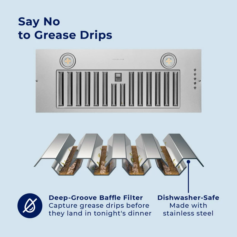 The performance is anything but forgettable! The stove hood features high CFM suction power, heavy-duty blower system, and grease-catching baffle filters. You’ll never have to choose between cooking your favorite meal and keeping your kitchen fresh again. Choose from 3 settings to suck away odors, fumes, and smoke fast. The baffle filters catch grease particles before they make their way onto your cabinets and countertops. No more wasting precious time on post-meal cleanup.