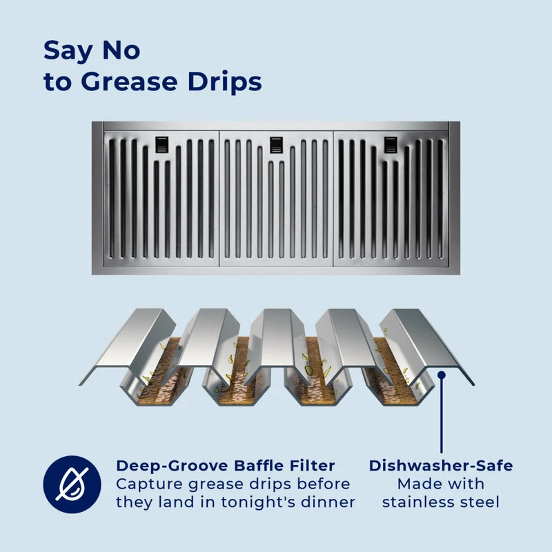 – DISHWASHER SAFE FILTER: Forget about washing the filters with your hands, just put them in the dishwasher. Clean filters will keep your range hood’s ventilation functioning at its best.