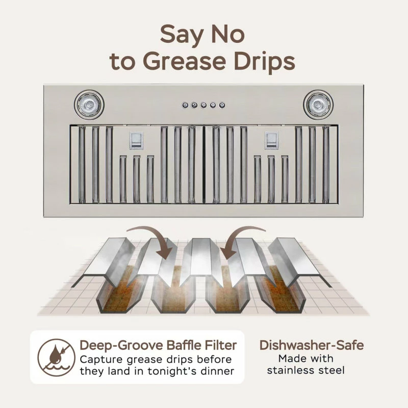 The Home Beyond 600 CFM Built-In / Insert Stainless Steel Range Hood 36 in. with baffle filters is a great addition to any kitchen. The 3-speed control push button puts you in control. The contemporary design will add a class to your home.