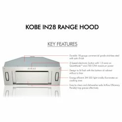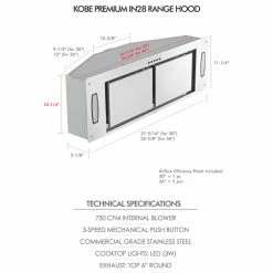KOBE Range Hoods’ IN28 Series built-in/ insert range hood fits with custom cabinetry without the need for a liner. High performance with 750 CFM internal blower and operates very quiet at 1.0 sone on QuietMode. This hood is equipped with an Airflow Efficiency Panel(s) to allow perimeter suction which can improve suction performance and sound reduction. It also comes with 3-speed mechanical push button for easy operation and LED lights that can vividly illuminate the cooking area. Optional 35-1/8 in. liner is available to purchase for 30″ hood. This product is made in Taiwan.