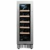 Wine storage meets style. The WC 20 Mirrored Glass Door 20 Bottle Wine Cooler combines elegant design with state-of-the-art thermoelectric cooling technology. This model boasts a larger capacity dual thermoelectric unit for improved cooling performance. This high performance wine cellar also boasts unique tempered mirror glass doors and soft interior lighting making it a great show piece in any room. The removable shelves also accommodate large or irregular sized bottles, or up to 20 regular sized 750ml wine bottles. Getting ready for a big party? Be host with the most with all your favorite wines pre-chilled to the perfect temperature and ready to enjoy. The touch screen LED display allows you to digitally adjust the temperature so that all your vintages are stored at the perfect temperature right down to the degree. For best results set-up your wine cellar in the coolest area of the room, away from heat producing appliances, and out of direct sunlight.