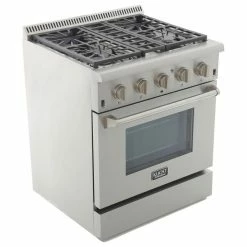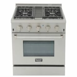 Get ready to start cooking like a pro, because now the home chef can fire up their range with some truly serious heat. Fitting into most standard kitchens, this impressive 30 in. Dual fuel range boasts an electric convection oven with broiler. Enjoy more cooking power than ever before because your new pro-style range features one 18,000 BTU burner, one 15,000 BTU dual burner with simmer and two 12,000 BTU burners.