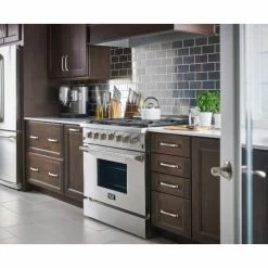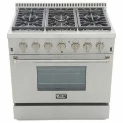 As with all Kucht ranges, it’s the attention to detail coupled with old-world craftsmanship that will turn the average home cooking area into a restaurant quality kitchen. Fitting larger kitchens, this professional grade 36 in. Kucht range boasts heavy-duty, blue porcelain 5.2 cu. ft. 22,000 BTU convection oven, along with a 16,500 BTU infra-red broiler. Enjoy more cooking power than ever before because your new Pro-Style range features one 18,000 BTU burner, two 15,000 BTU dual burners with simmer and three 12,000 BTU burners. Unleash your inner chef.