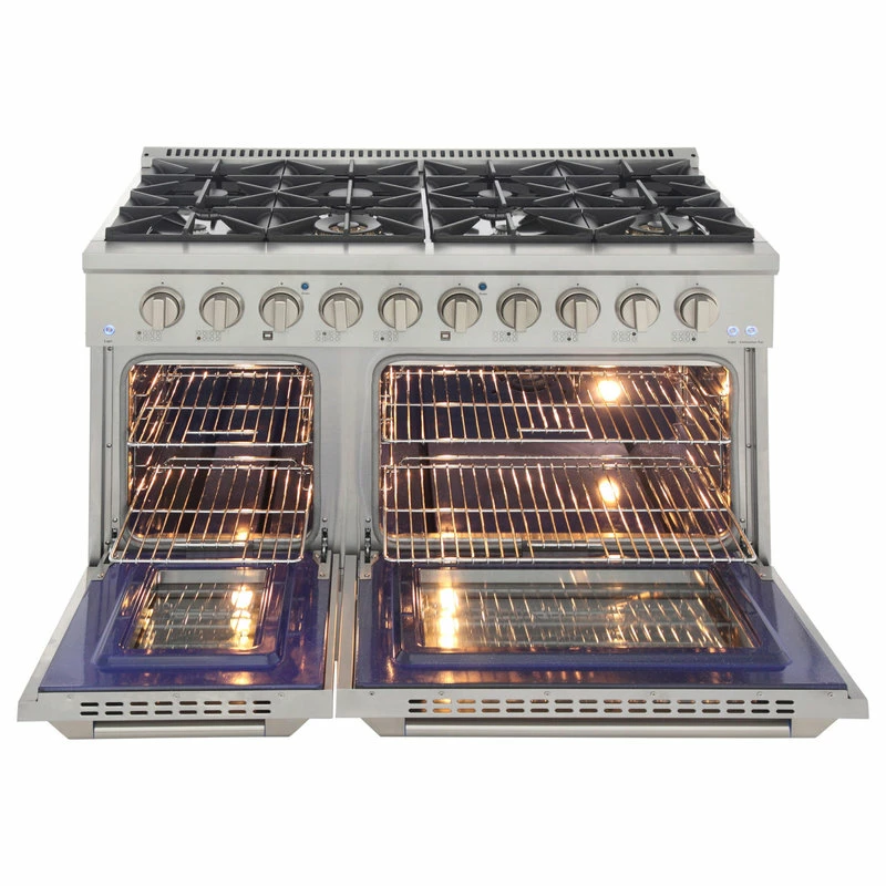 SKU: KNG481/LP-S Categories: Gas & Electric Ranges, Kitchen Appliances Tags: 48 in., 48 inch, 48 inch gas range, Broiler, Color doors, Convection oven, Customizable, Double oven, Freestanding Stoves, Kucht, Liquid propane, Natural gas, Optional color, Oven, Professional, Propane ready, Sealed burners, Slide in, Stainless steel, Stove