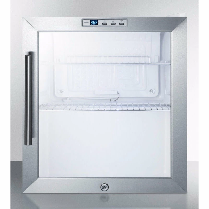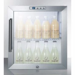 - Double pane tempered glass door keeps cold air in while displaying contents