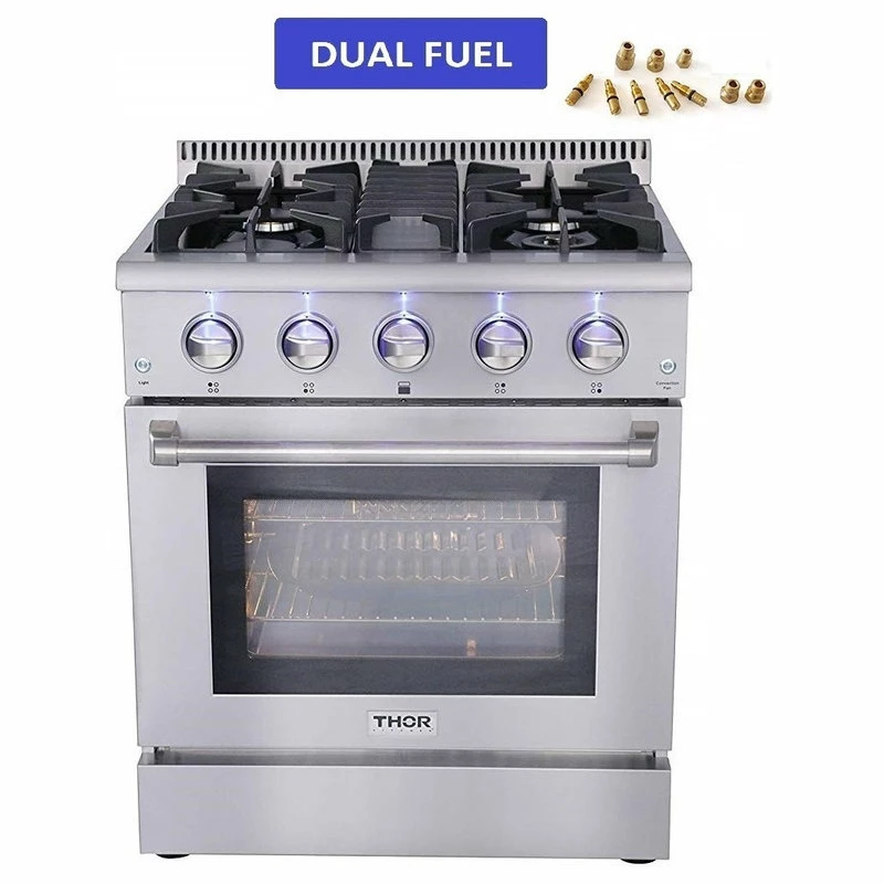 - HRD3088U – Thor Kitchen 30 Inch Dual Fuel Range in Stainless Steel, Gas Burner/Electric Oven