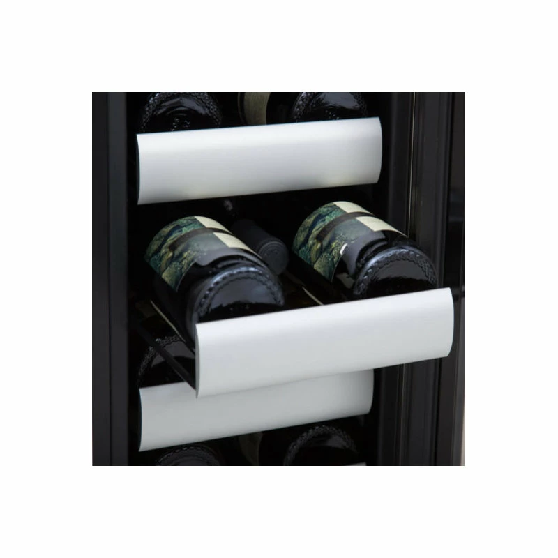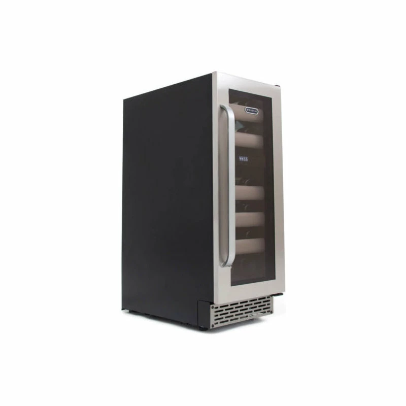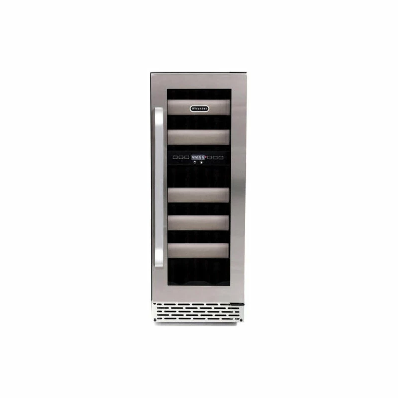 Whynter Elite 17 Bottle Seamless Stainless Steel Door Dual Zone Built-in Wine RefrigeratorStore your finest bottles of wine in the stylish and functional Whynter Elite Seamless Stainless Steel Door Dual Zone Built-in Wine Refrigerators. Keep both red and white wines at their optimum temperatures using this wine refrigerators dual zone operation and wide temperature range of 41- 72F. The Whynter BWR-171DS wine refrigerator can store approximately 6 bottles in the top zone and 11 in the bottom, each adjustable using the touch controls and a digital temperature display. Using premium materials and techniques to achieve a seamless door frame, this wine storage unit sets its appearance apart from your conventional product. Product Dimension : 34.5″ H x 12″ W x 23″ D (24.75″ D with handle installed)