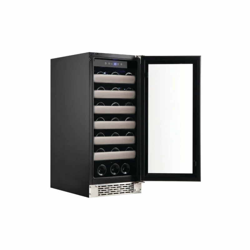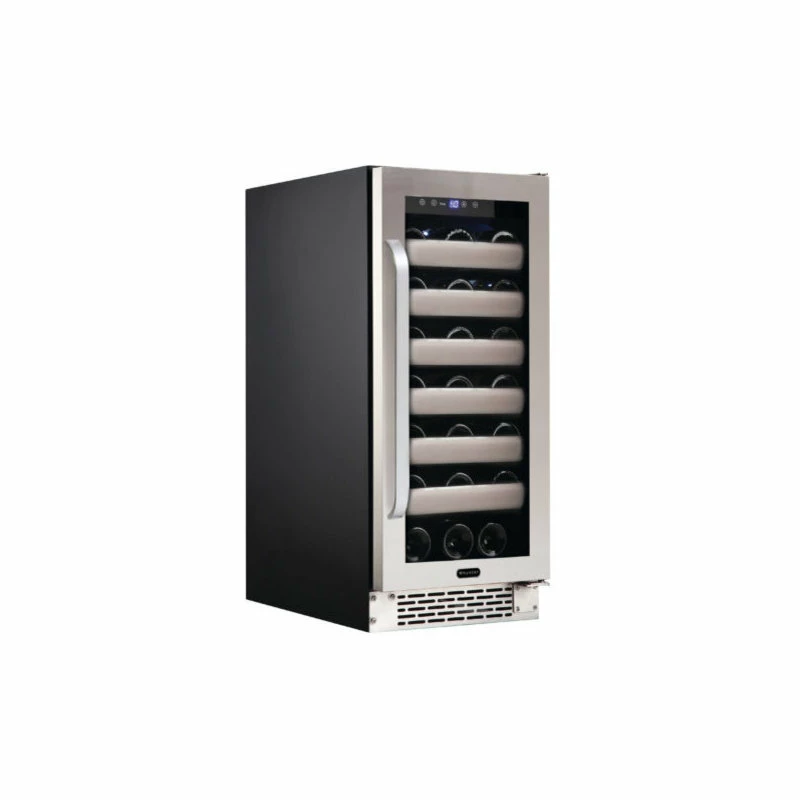 Whynter Elite 33 Bottle Seamless Stainless Steel Door Single Zone Built-in Wine RefrigeratorStore your finest bottles of wine in the stylish and functional Whynter Elite Seamless Stainless Steel Door Dual Zone Built-in Wine Refrigerators. Keep your red, white, or sparkling wines at their optimum temperatures using this wine refrigerators single zone operation and wide temperature range of 40- 66F. The Whynter BWR-331SL wine refrigerator can store approximately 33 standard wine bottles and equipped with an adjustable touch control thermostat and a digital temperature display. Using premium materials and techniques to achieve a seamless door frame, this wine storage unit sets its appearance apart from your conventional product. Product Dimension : 35″ H x 15″ W x 23″ D (24.75″ D with handle installed)