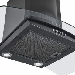 This 30 In. wall mounted range hood is constructed of premium black color powder coating steel and clear tempered glass. Complete with a black mesh filter that remove smoke and grease from your cooking area and is dishwasher safe. This model also comes with 2 bright soft white energy saver LED lights, low noise level operation, 284 CFM air flow, push button control with 3-level fan speed. All the components such as damper, mounting hardware, flexible duct work and damper are included for easy installation. Adjustable chimney can fit 7.5-8.5 Ft. ceiling. This unit is convertible, can be vented out of your dwelling or recirculating (ductless) with charcoal filters (part # WRHF005S2, sold separately).
