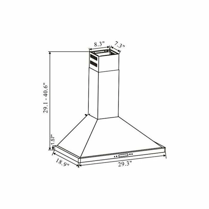 This beautiful wall mounted range hood will create splendor in your kitchen. Constructed of premium 430 stainless steel to deliver elegance and easy cleaning. Complete with easy removable baffle filters that removes smoke and grease from your cooking area and are dishwasher safe. Powerful suction with 439 CFM air flow rate is perfect for household use and an ideal balance between power, energy efficiency and noise control. This model also comes with 2 bright LED energy saver lights, low noise level operation, large black touch sensor control panel and 3-level fan speed. Adjustable and telescoping chimney can fit 7.5 to 8.5 Ft. ceiling. This unit is convertible, can be vented out of your dwelling or recirculating (ductless) with charcoal filters (included, part #WRHF004S2).