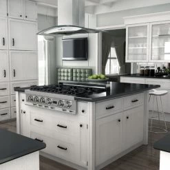 - Crown Molding is included on all Designer Range Hoods providing a seamless hood to ceiling transition