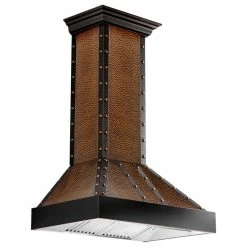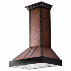 The ZLINE 655-HBBBB-30 is a 30 in. Designer Series Copper Wall Mount Range Hood with a modern design and built-to-last quality, making it a great addition to any kitchen. This hood’s high-performance, 500 CFM 4-speed motor will provide all the power you need to quietly and efficiently ventilate your stove while cooking. The professional hand-hammered copper hood with oil-rubbed bronze band and embellishments is made from 304 grade stainless steel, featuring ZLINE’s proprietary hand-rubbed 7-layer copper finish. Enjoy modern features, including built-in LED lighting for an illuminated culinary experience and dishwasher-safe stainless steel baffle filters for easy clean-up. This wall mount range hood has a convertible vent, so you can have a luxury range hood whether you need a ducted or ductless option. Enjoy easy installation and an easy recirculating conversion process. Experience Attainable Luxury� in the heart of your home, with a ZLINE range hood. ZLINE Kitchen and Bath stands by all products with its manufacturer parts warranty. The 655-HBBBB-30 ships next business day when in stock.