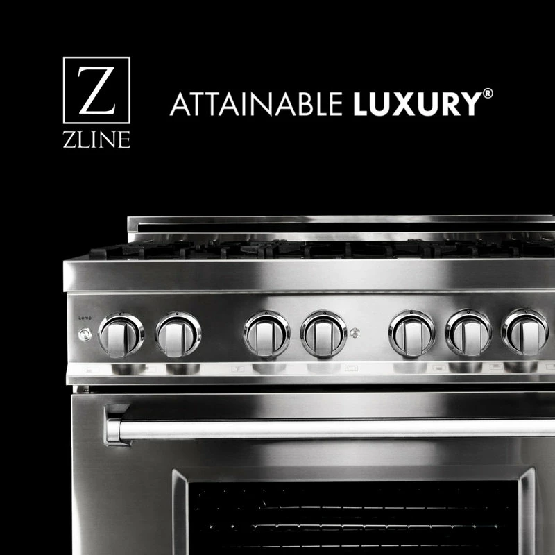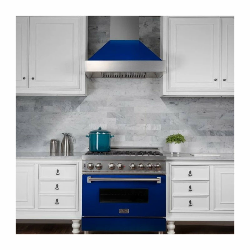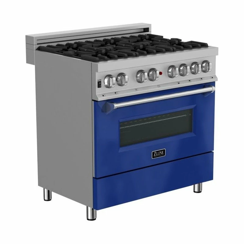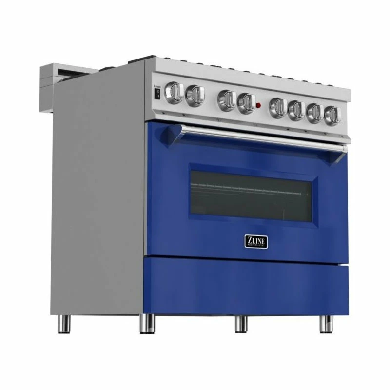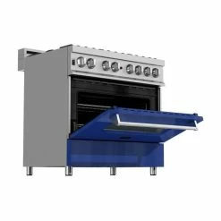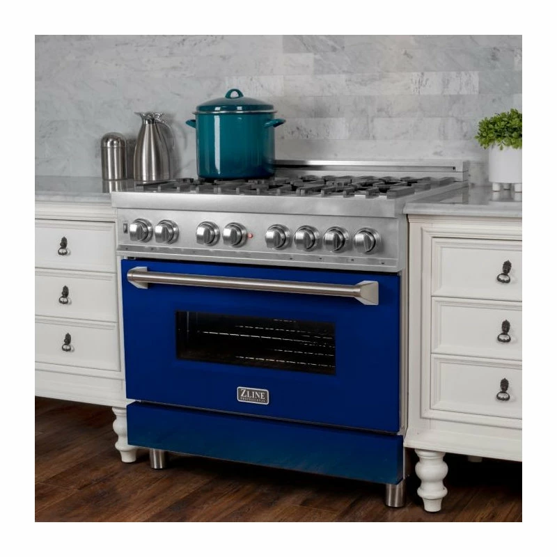 Luxury isn�t meant to be desired – it�s meant to be attainable. Designed in Lake Tahoe, USA, the ZLINE 36″ 4.6 cu. ft. Dual Fuel Range with Gas Stove and Electric Oven in DuraSnow� Stainless Steel and Blue Gloss Door (RAS-BG-36) provides a professional culinary experience by pairing unmatched performance with timeless style. Achieve ZLINE Attainable Luxury� excellence with innovative features designed to enhance your kitchen�s capability.