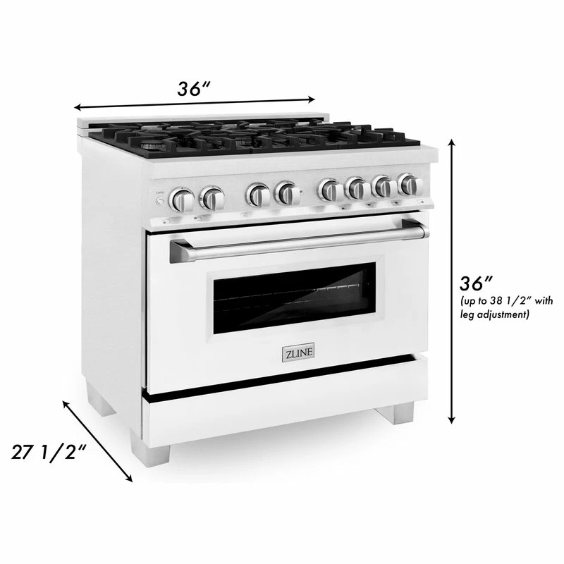 Luxury isn’t meant to be desired – it’s meant to be attainable. Designed in Lake Tahoe, USA, the ZLINE 36″ 4.6 cu. ft. Dual Fuel Range with Gas Stove and Electric Oven in DuraSnow® Stainless Steel and White Matte Door (RAS-WM-36) provides a professional culinary experience by pairing unmatched performance with timeless style. Achieve ZLINE Attainable Luxury® excellence with innovative features designed to enhance your kitchen’s capability.
