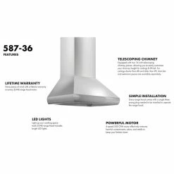 SKU: 587-36 Categories: Kitchen Appliances, Range Hoods & Vents Tags: Contemporary kitchen, Farmhouse kitchen, Island rangehood, Kitchen, Kitchen vent hood, Kitchen ventilation, Major kitchen appliances, Modern kitchen, Outdoor range hood, Range hood, Stainless Steel Range Hood, Traditional kitchen, Transitional kitchen, Vent hood, Wall range hood