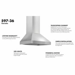 SKU: 597-36 Categories: Kitchen Appliances, Range Hoods & Vents Tags: Contemporary kitchen, Farmhouse kitchen, Island rangehood, Kitchen, Kitchen vent hood, Kitchen ventilation, Major kitchen appliances, Modern kitchen, Outdoor range hood, Range hood, Stainless Steel Range Hood, Traditional kitchen, Transitional kitchen, Vent hood, Wall range hood