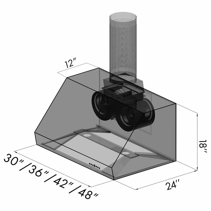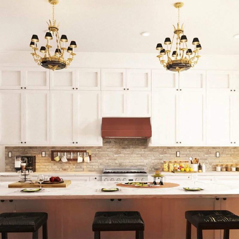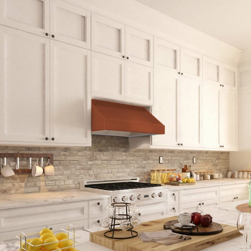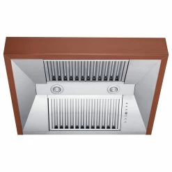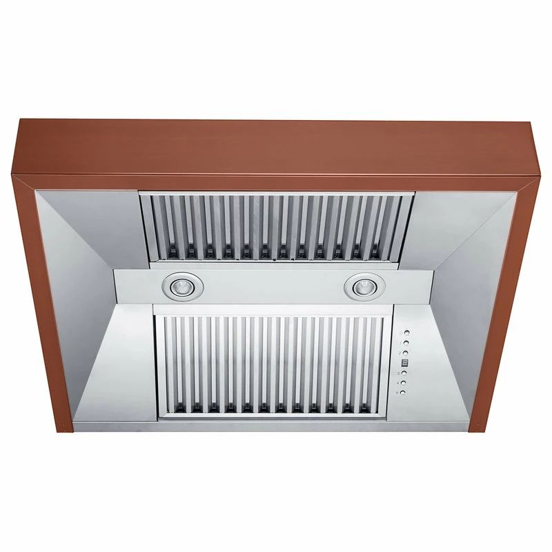 The ZLINE 8685C-36 is a 36 in. professional wall mount stainless steel range hood with a modern design and built-to-last quality, making it a great addition to any kitchen. This hood’s high-performance, 700 CFM 4-speed motor will provide all the power you need to quietly and efficiently ventilate your stove while cooking. With its classic 304 grade stainless steel and copper finish, this range hood contains rust, temperature, and corrosion-resistant properties to ensure a durable vent hood that will last for years to come. Enjoy modern features, including built-in LED lighting for an illuminated culinary experience and dishwasher-safe stainless steel baffle filters for easy clean-up. This wall mount range hood has a ducted vent with easy, simple installation. Experience Attainable Luxury® in the heart of your home, with a ZLINE range hood. ZLINE Kitchen and Bath stands by all products with its manufacturer parts warranty. The 8685C-30 ships next business day when in stock.