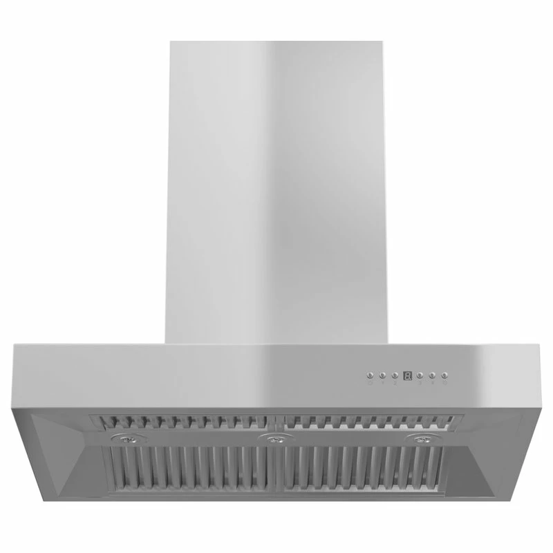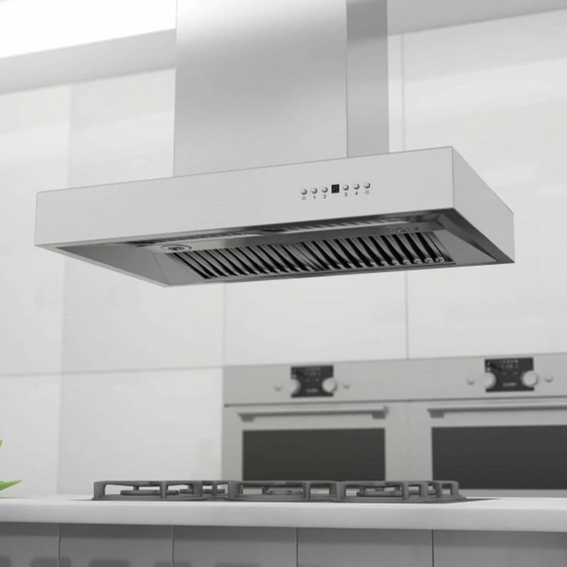 The ZLINE KECOMi-36 is a 36 in. professional island mount stainless steel range hood with a modern design and built-to-last quality, making it a great addition to any kitchen. This hood’s high-performance, 700 CFM 4-speed motor will provide all the power you need to quietly and efficiently ventilate your stove while cooking. With its classic 430 grade stainless steel, this range hood contains rust, temperature, and corrosion-resistant properties to ensure a durable vent hood that will last for years to come. Enjoy modern features, including built-in LED lighting for an illuminated culinary experience and dishwasher-safe stainless steel baffle filters for easy clean-up. This island mount range hood has a ducted vent with easy, simple installation. Enjoy easy installation and an easy recirculating conversion process. Experience Attainable Luxuryยฎ in the heart of your home, with a ZLINE range hood. ZLINE Kitchen and Bath stands by all products with its manufacturer parts warranty. The KECOMi-36 ships next business day when in stock.