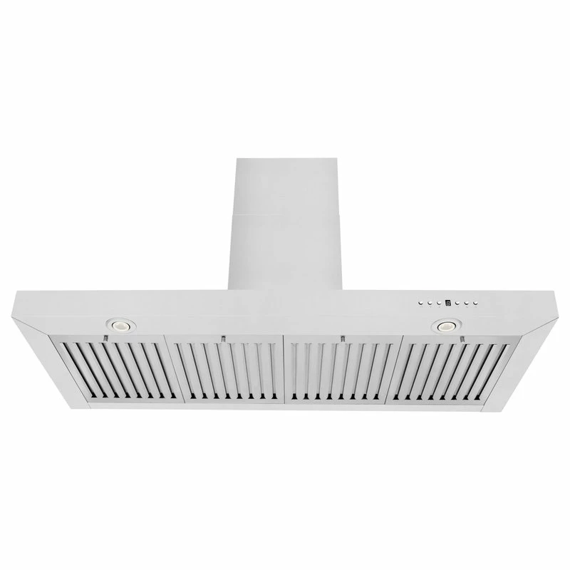 The ZLINE KE-48 is a 48 in. professional wall mount stainless steel range hood with a modern design and built-to-last quality, making it a great addition to any kitchen. This hood’s high-performance, 400 CFM 4-speed motor will provide all the power you need to quietly and efficiently ventilate your stove while cooking. With its classic 430 grade stainless steel, this range hood contains rust, temperature, and corrosion-resistant properties to ensure a durable vent hood that will last for years to come. Enjoy modern features, including built-in LED lighting for an illuminated culinary experience and dishwasher-safe stainless steel baffle filters for easy clean-up. This wall mount range hood has a convertible vent, so you can have a luxury range hood whether you need a ducted or ductless option. Enjoy easy installation and an easy recirculating conversion process. Experience Attainable Luxury® in the heart of your home, with a ZLINE range hood. ZLINE Kitchen and Bath stands by all products with its manufacturer parts warranty. The KE-48 ships next business day when in stock.